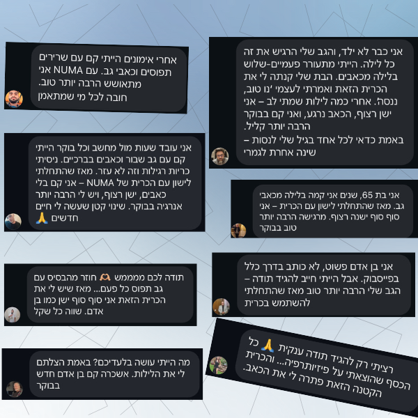 “אני מול מחשב כל היום והייתי קם עם גב שבור. עם הכרית של NUMA – ישן רצוף וקם בלי כאבים. ממליץ בחום!”