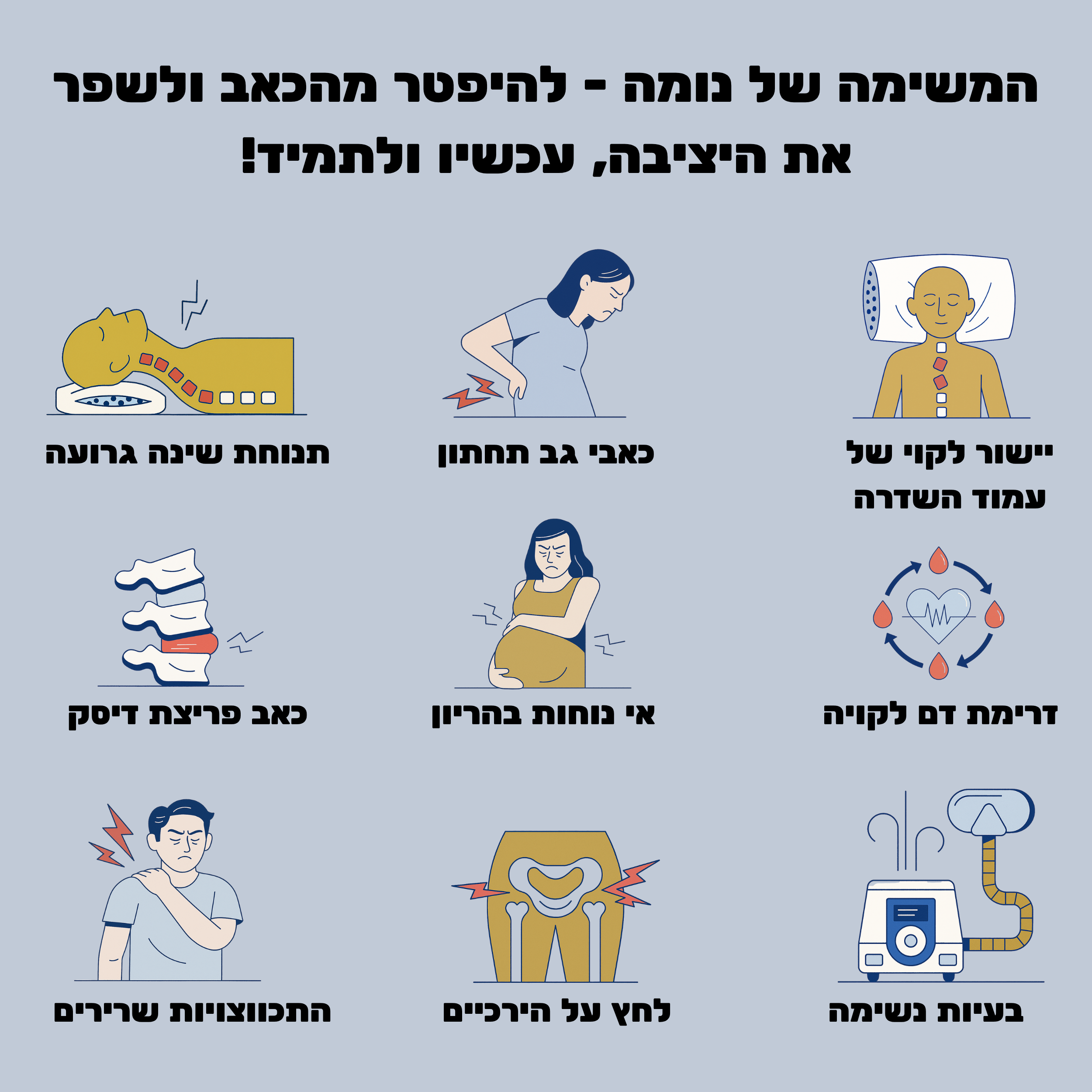 כבר יותר מ-5,000 לישראלים הבינו שבעזרת הכרית שלנו הם יכולים לשכוח מהכאבים, ללכת זקוף יותר, להרגיש תחושת ביטחון ואולי סוף סוף...